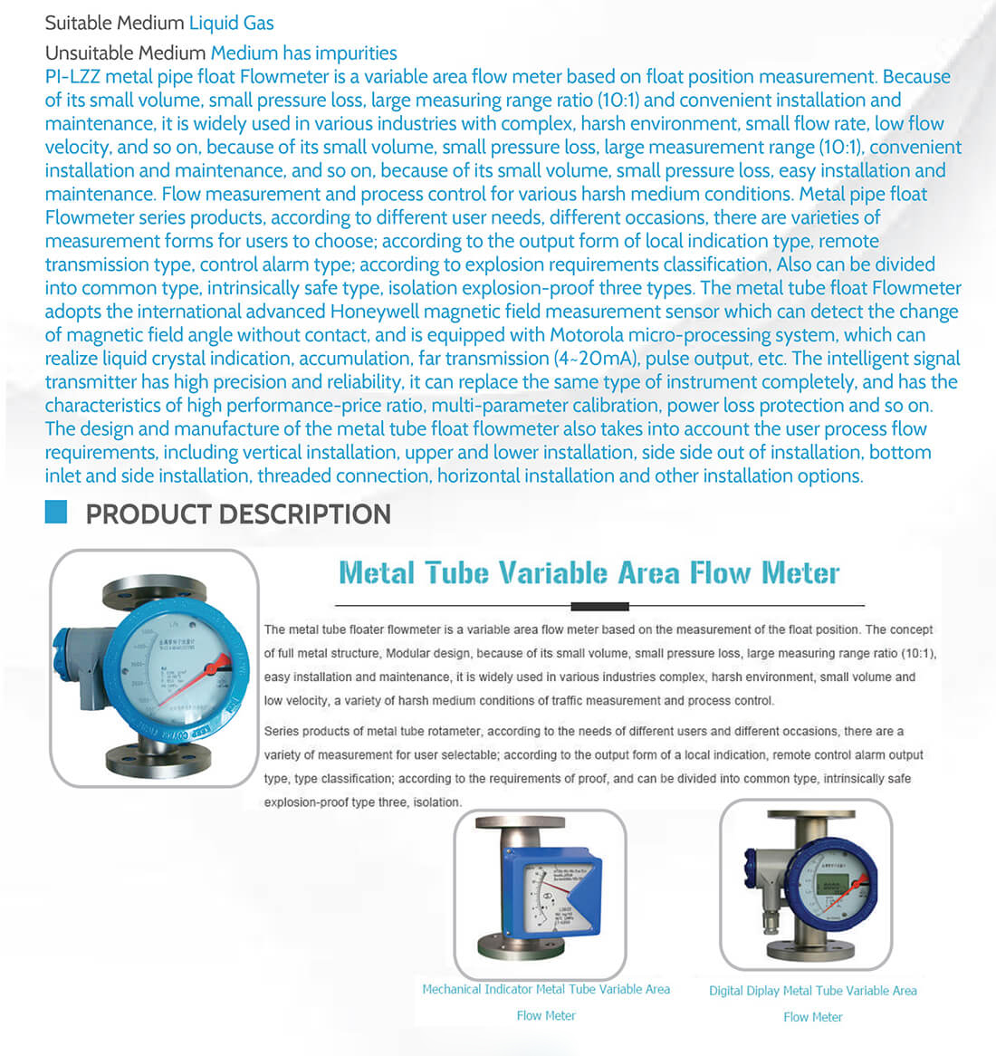 PI-LZZMETAL TUBE FLOAT FLOW METER