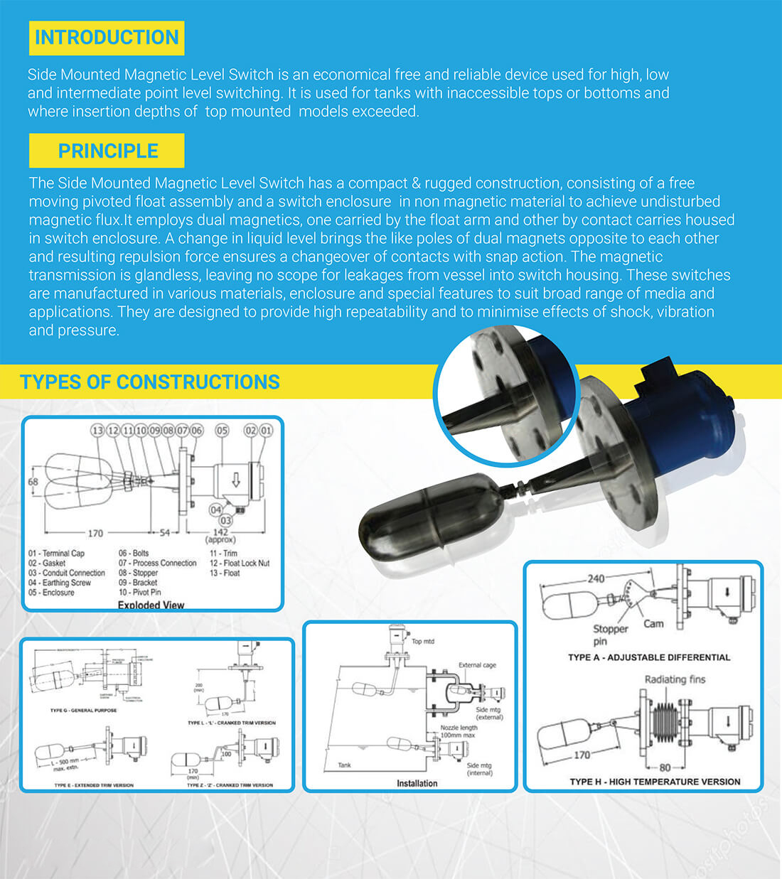 SIDE MOUNTED MAGNETIC LEVEL SWITCH
